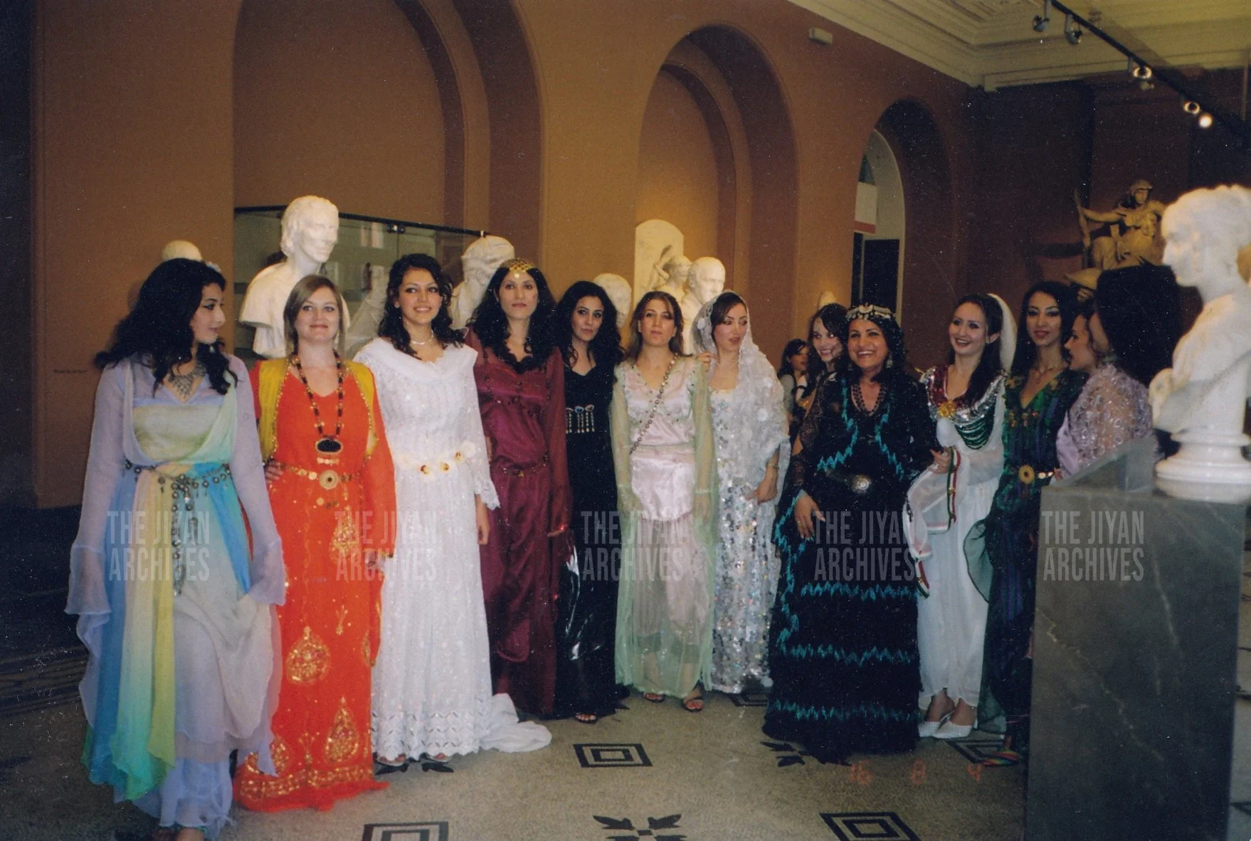 Photo: Della Murad stood in line with her models, showcasing her Kurdish clothing line at the Kurdish Fashion event in London, 2007.