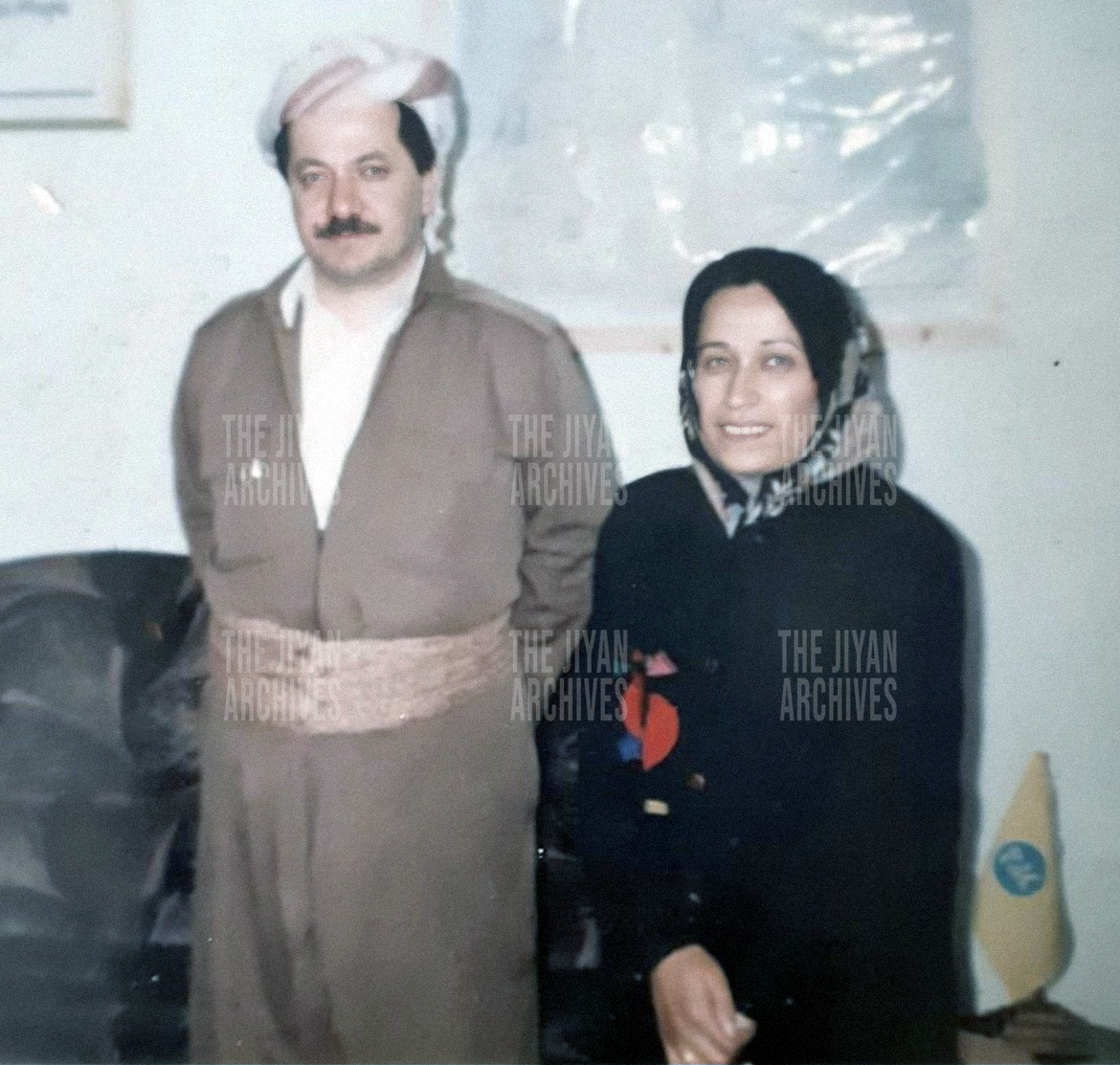 Gulnam with former President, Masoud Barzani, during a visit to the headquarters of the Kurdish Women's Union in Erbil, Kurdistan, 1993. © Gulnam Mahmood Mustafa/The Jiyan Archives